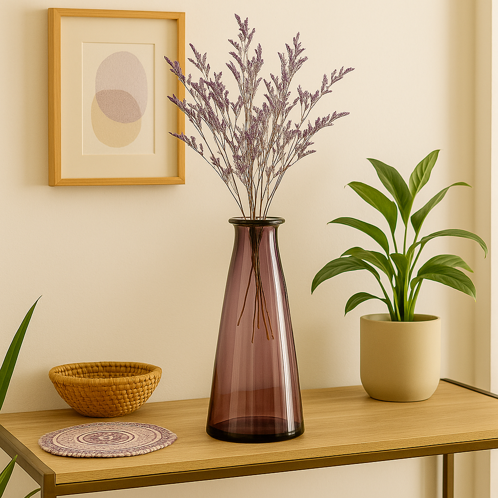 Bring effortless elegance to your space with our Plum Cone Glass Vase ๐โจ. Featuring a sleek, tapered silhouette and a soft plum hue, this vase adds a modern touch to any corner of your home.